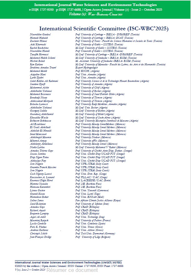 Azzedine Hani (Laboratoire des Ressources en Eau et Développement Durable, University Badji Mokhtar Annaba, Algérie) Samir Hani, Nabil Bougherira, Larbi Djabri and Hicham Chaffai (Approvisionnement en eau et prévision de l’offre et de la demande en eau dans une région du Sud de la Méditerranée à l’aide du modèle WEAP
