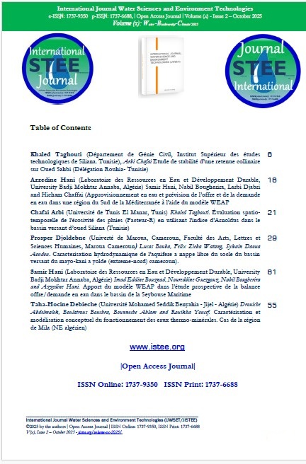 Azzedine Hani (Laboratoire des Ressources en Eau et Développement Durable, University Badji Mokhtar Annaba, Algérie) Samir Hani, Nabil Bougherira, Larbi Djabri and Hicham Chaffai (Approvisionnement en eau et prévision de l’offre et de la demande en eau dans une région du Sud de la Méditerranée à l’aide du modèle WEAP